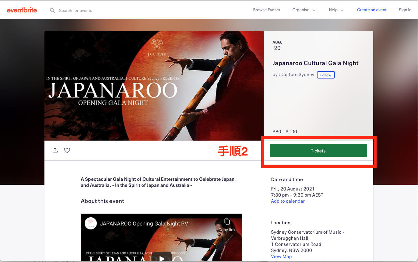 1. JAPANAROO OPENING GALA NIGHTページにアクセス