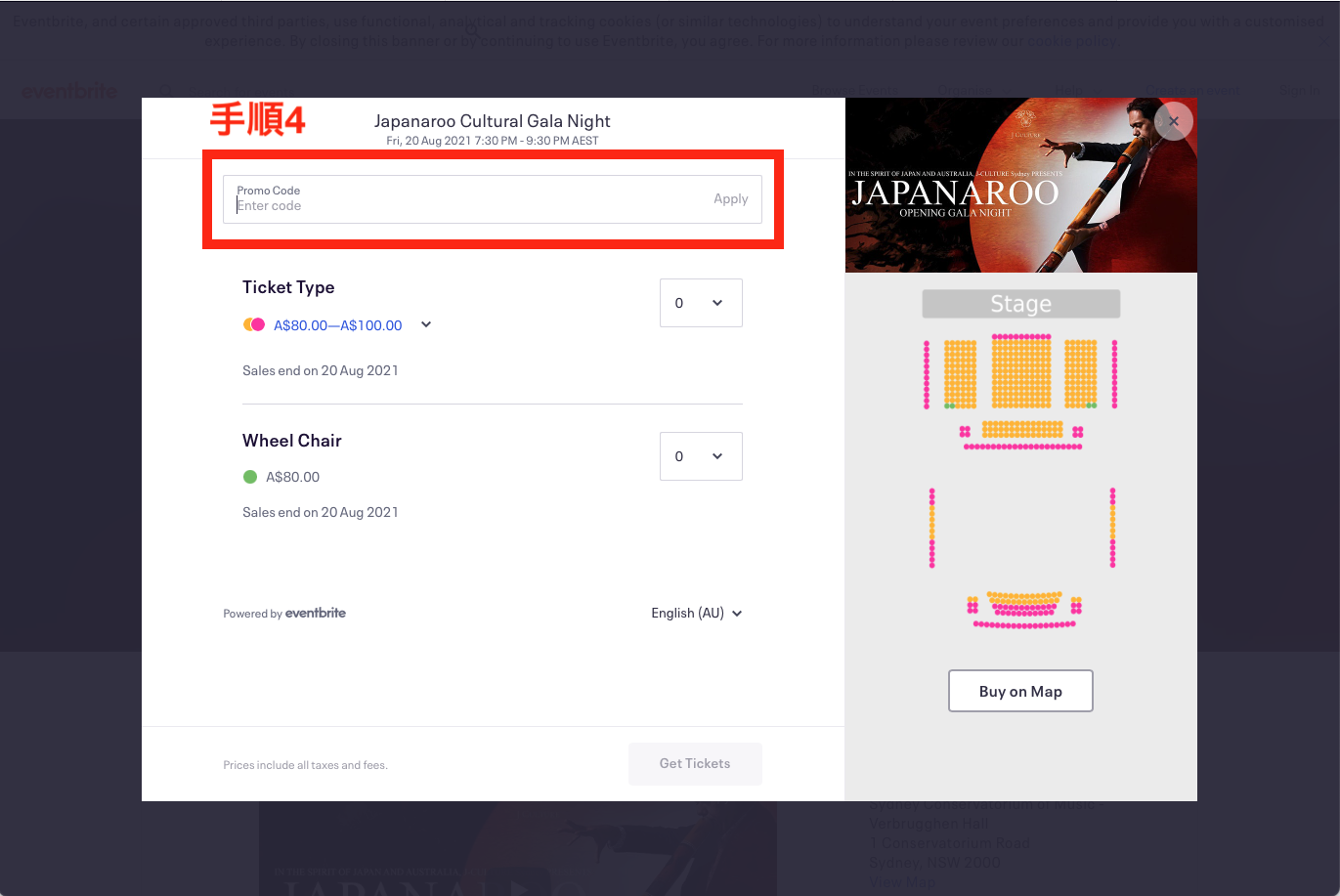 WSOのプロモーションコードを使用し購入していただきますと、ご購入者には20%の割引がされ、WSO側にはチケット1枚につき10ドルが寄付金となります。